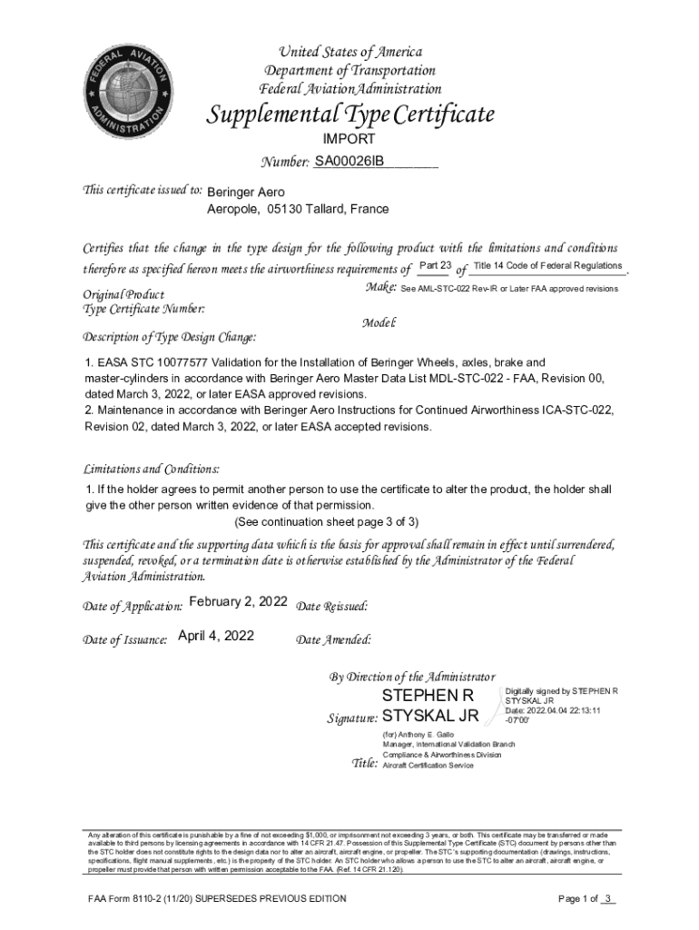 How to fill out supplemental type certificate
