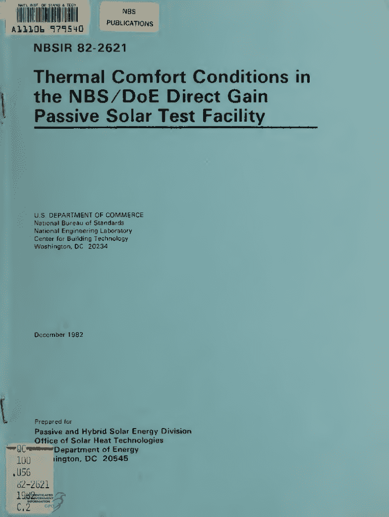 This report documents the analysis of thermal comfort conditions based on ASHRAE Comfort Standard 55-1981 using data from a passive solar test facility, discussing the implications of direct solar