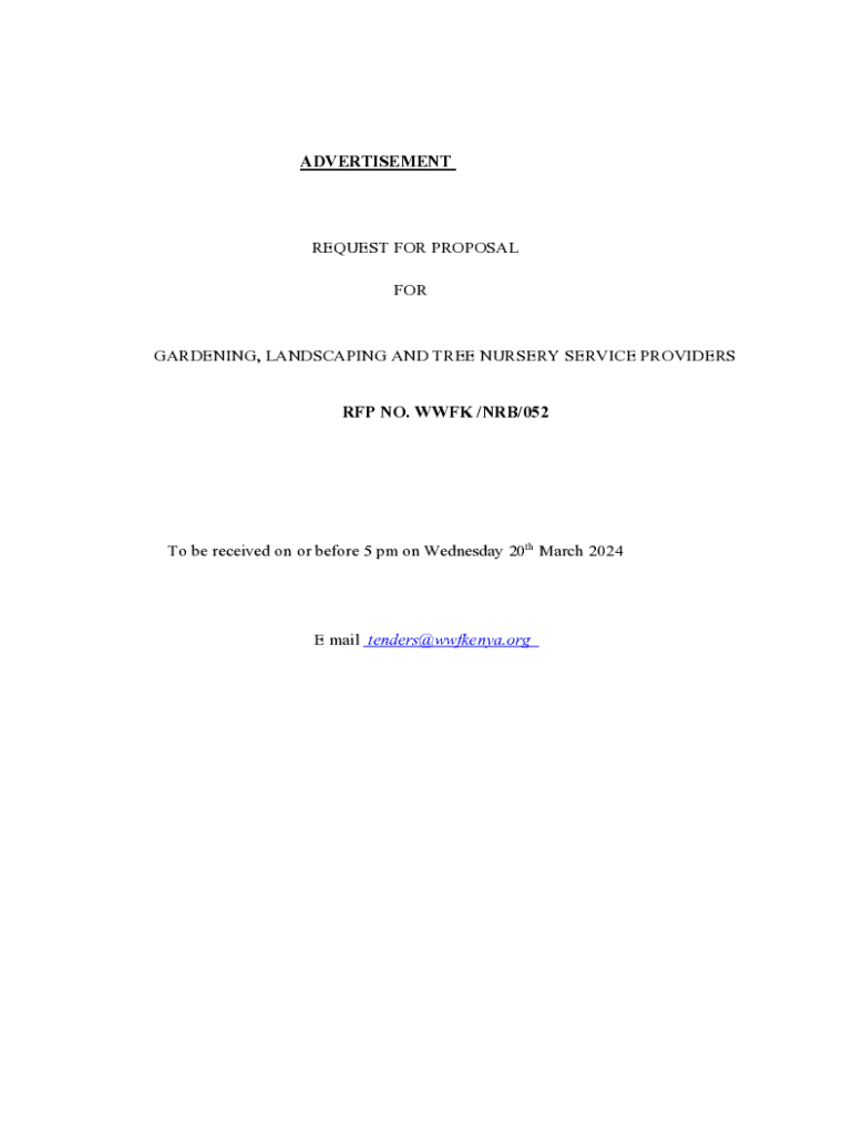 Get the free Request for Proposal for Gardening, Landscaping and Tree Nursery Service Providers
