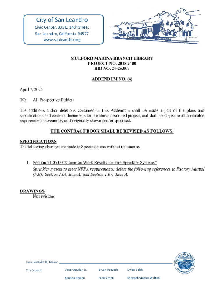 Get the free Addendum No. 4 for Mulford Marina Branch Library
