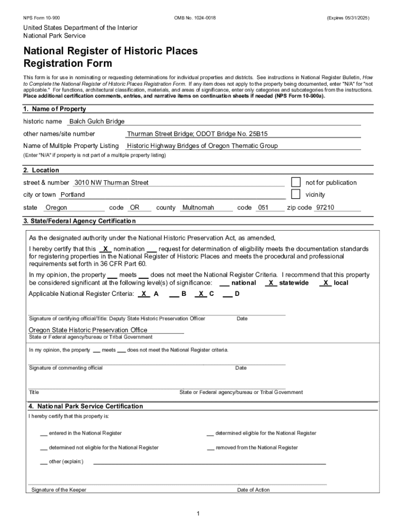 The document structure of NPS Form 10-900 consists of several key sections that guide users in providing comprehensive information about a property. Users will encounter sections that require detailed personal and property information, descriptions of the historical significance, and supporting documentation. Understanding this structure is vital to ensure accurate and complete submissions.