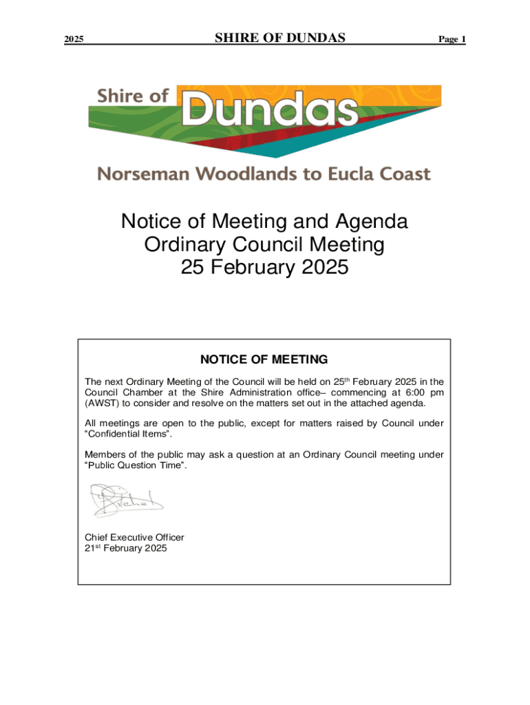 Get the free Notice of Meeting and Agenda Ordinary Council Meeting