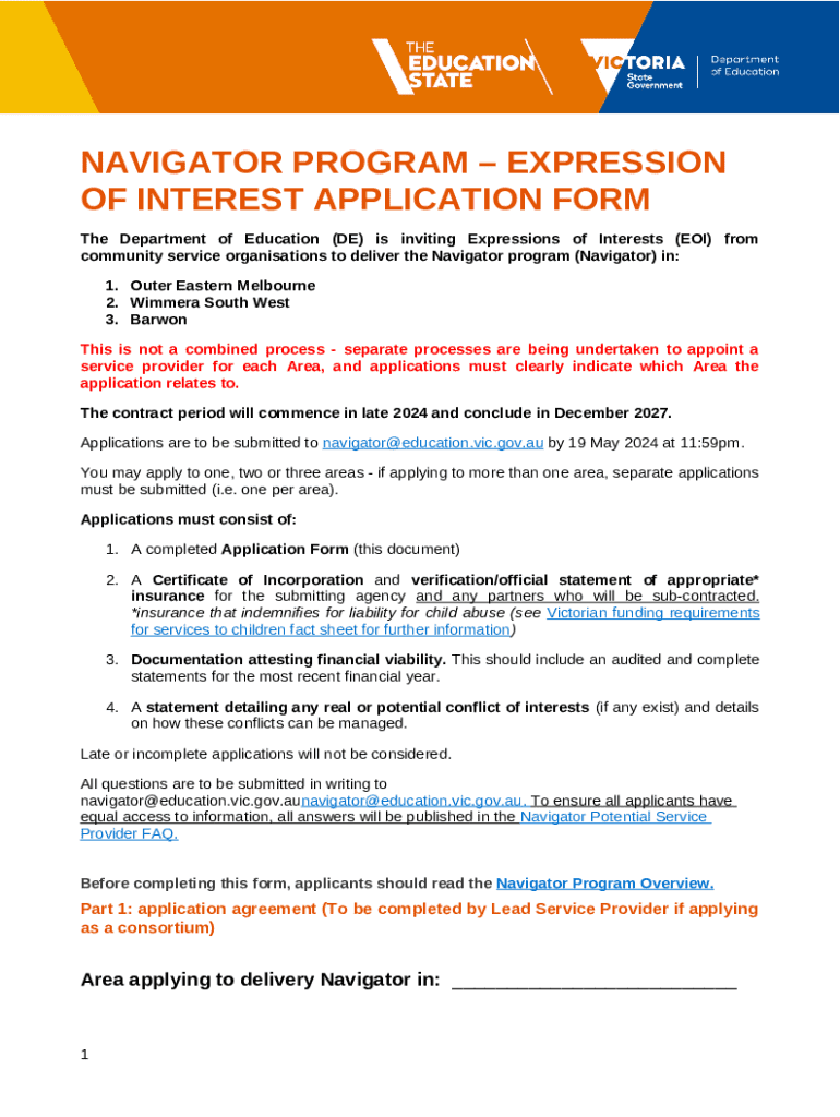 Frequently asked questions about the form Navigator Program - Expression of Interest Application
