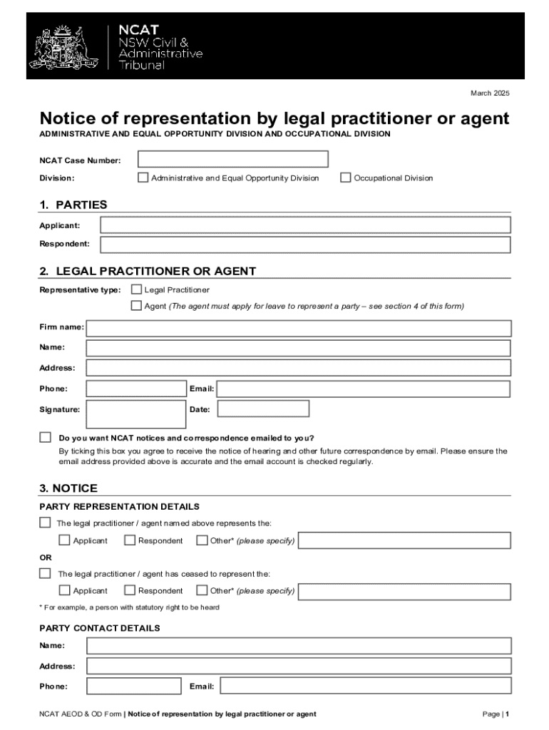 Get the free Notice of Representation by Legal Practitioner or Agent
