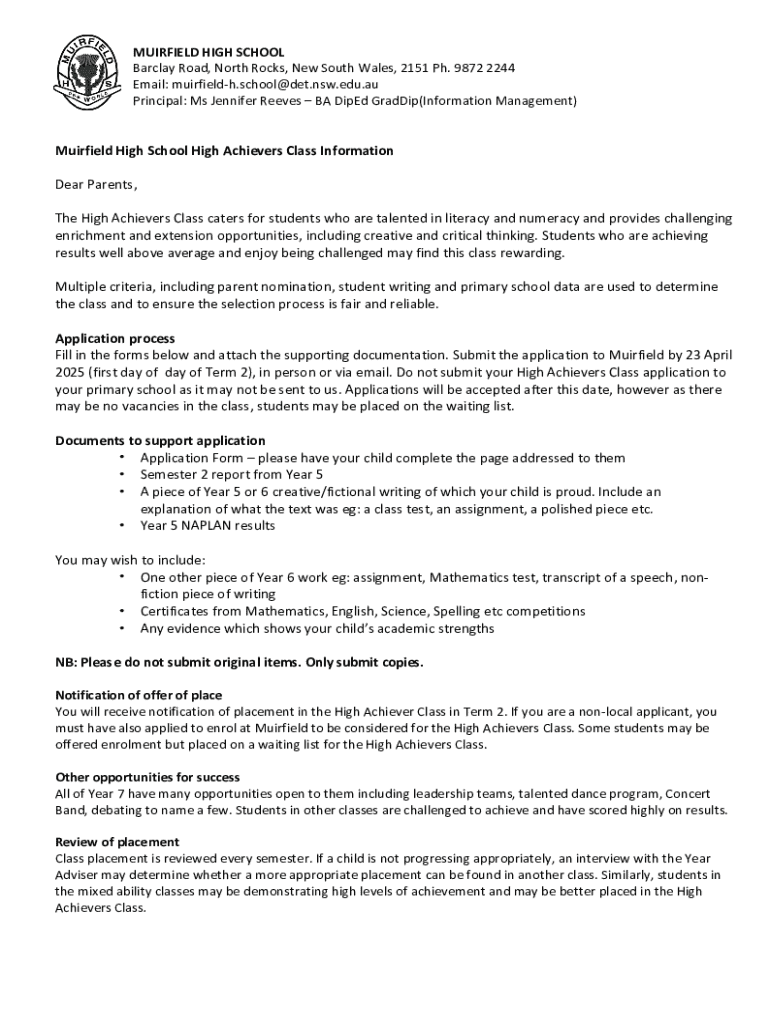 Understanding the high achievers class information form