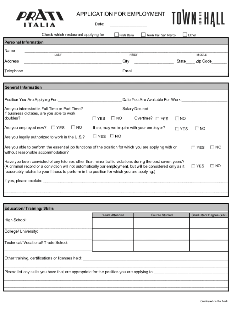 Get the free Application for Employment