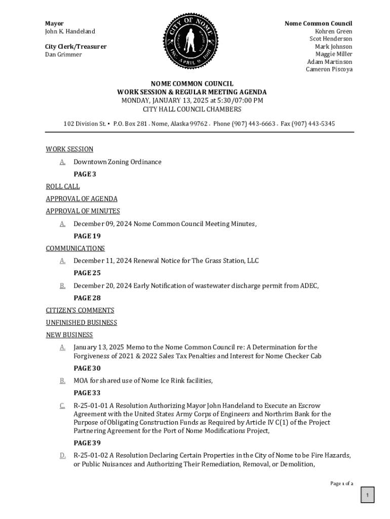 Get the free Nome Common Council Work Session & Regular Meeting Agenda