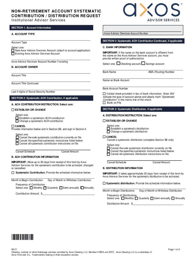 The non-retirement account systematic contribution form is an essential tool that facilitates the establishment of regular investment contributions into your account. This form serves a dual purpose: documenting your investment preferences and assisting financial institutions in managing your contributions effectively. Completing this form accurately ensures that your investment strategy aligns with your financial goals.
