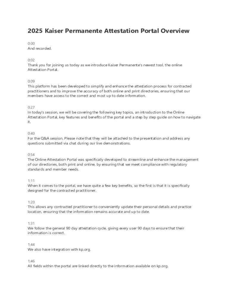 Get the free Kaiser Permanente Attestation Portal Overview