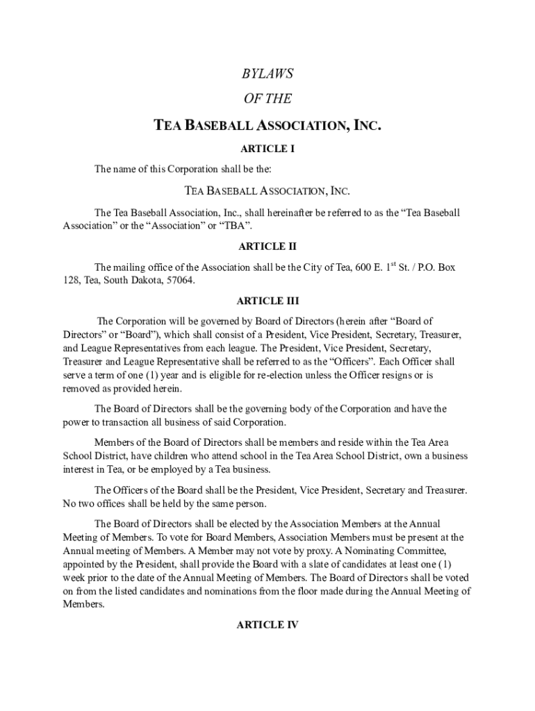Get the free Bylaws of the Tea Baseball Association, Inc.