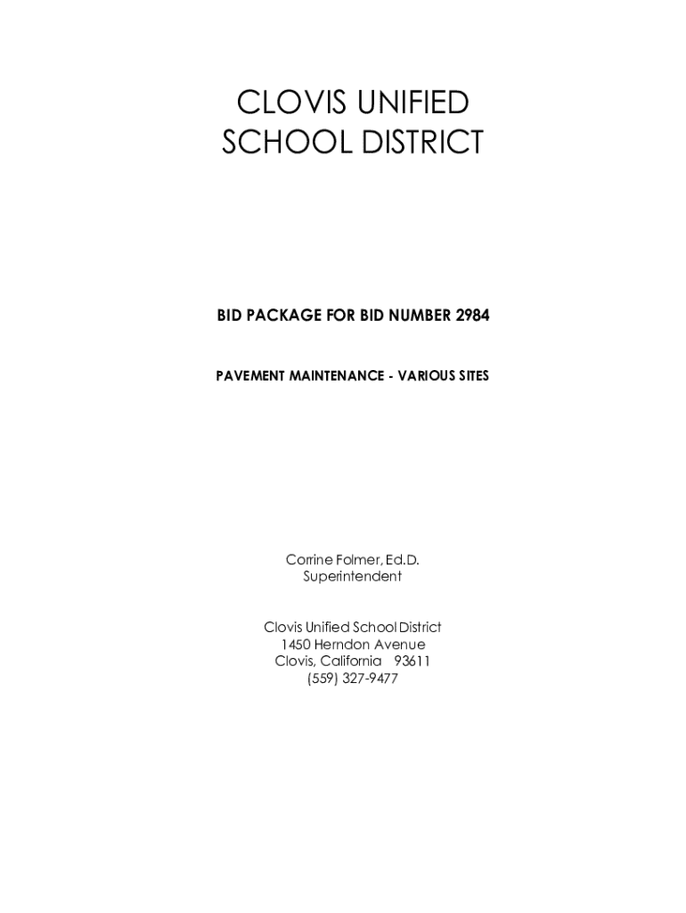 Get the free Bid Package for Bid Number 2984 Pavement Maintenance - Various Sites