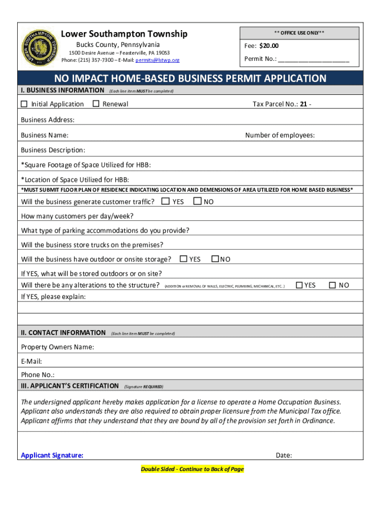 Get the free No Impact Home-based Business Permit Application