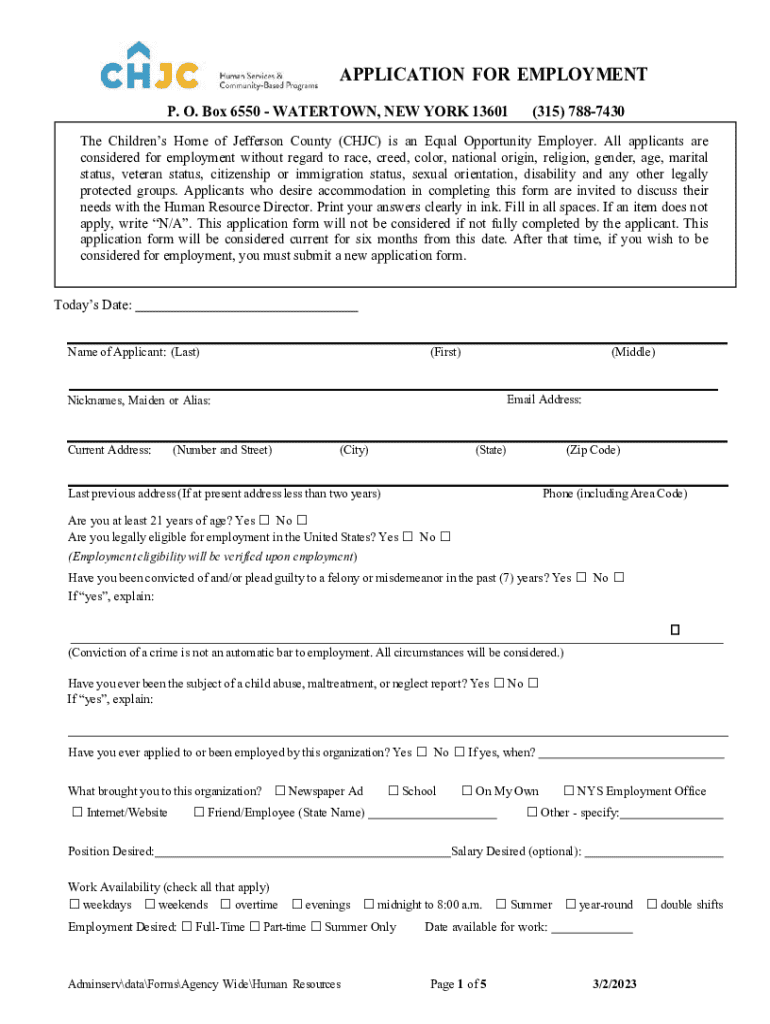 The application for employment form serves as a critical tool in the hiring process, representing the initial point of contact between a potential employee and an employer. Its primary purpose is to gather essential information about a candidate’s background, skills, and qualifications, enabling hiring managers to assess fit for the role in question.