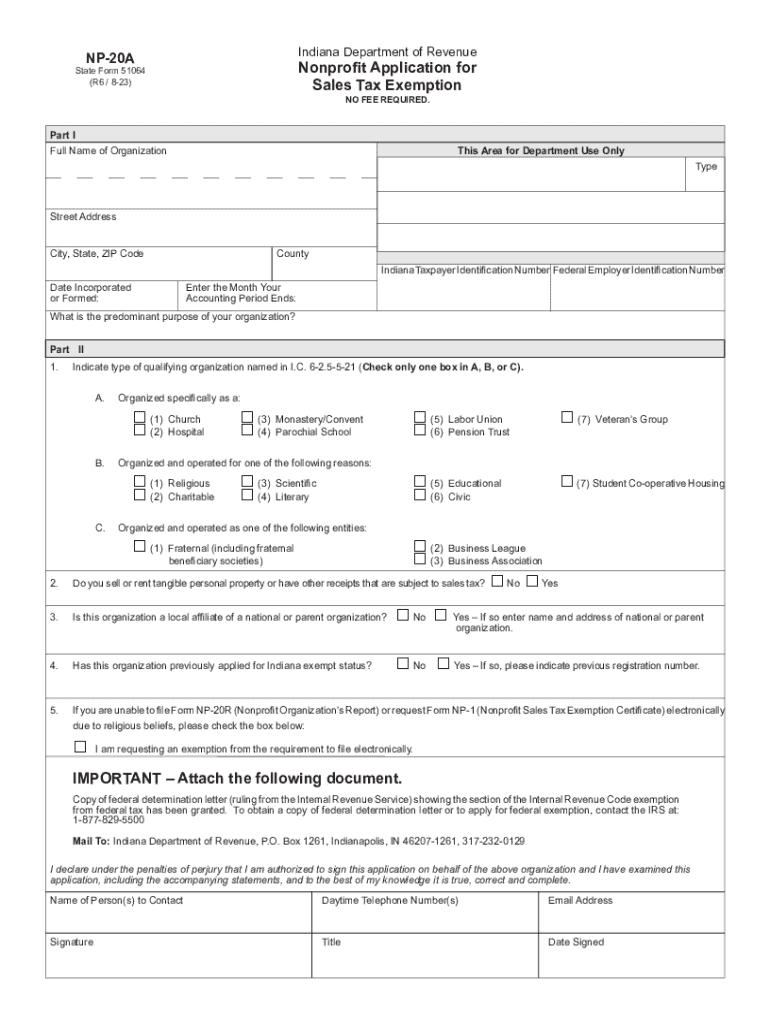 Application for nonprofits in Indiana seeking sales tax exemption status.