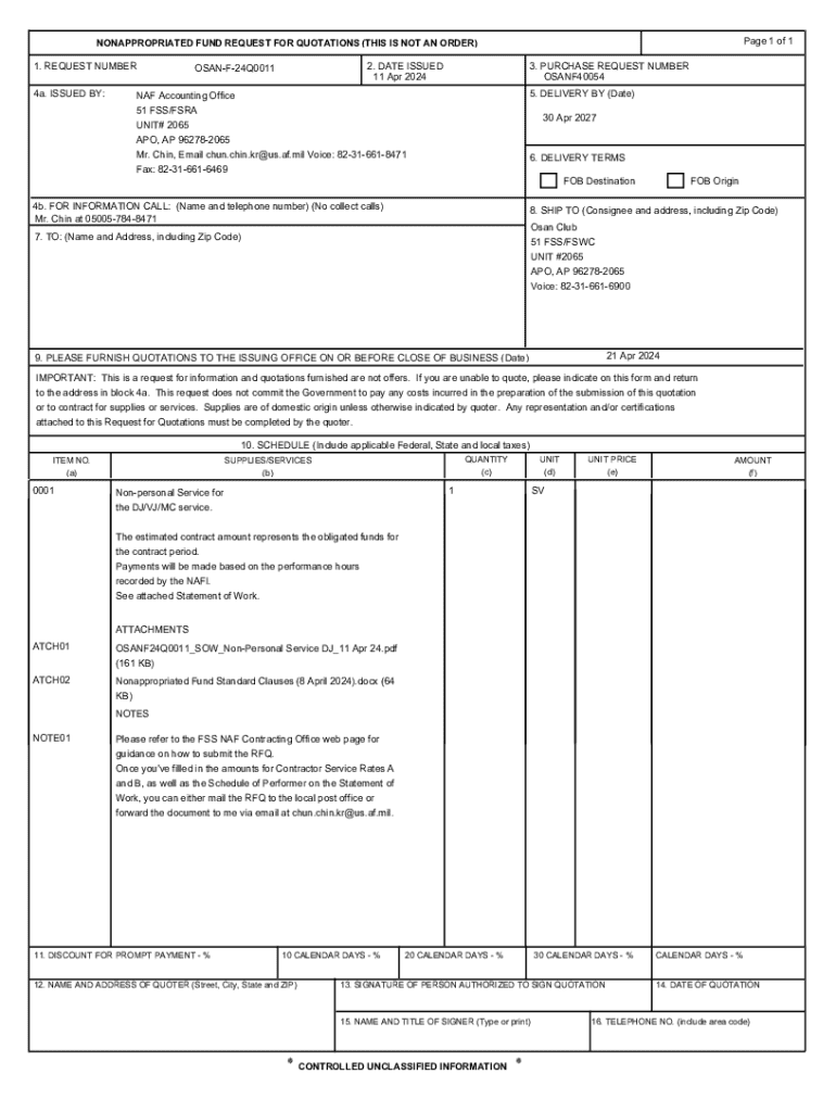 Get the free Nonappropriated Fund Request for Quotations