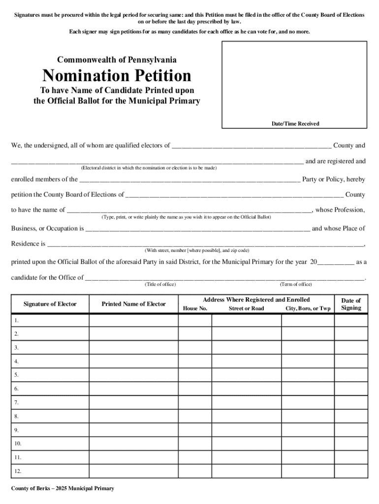 Get the free Nomination Petition