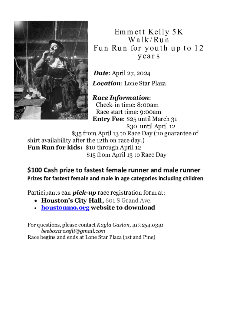 Named after the iconic clown performer Emmett Kelly, the event pays tribute to his legacy in the realm of entertainment and his ability to uplift spirits through laughter and joy. Kelly’s influence transcended generations; thus, this 5K walk/run has become a staple of local culture and festivities, reinforcing the importance of both health and entertainment within the community fabric.