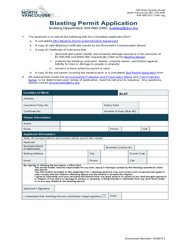 Get the free Blasting Permit Application
