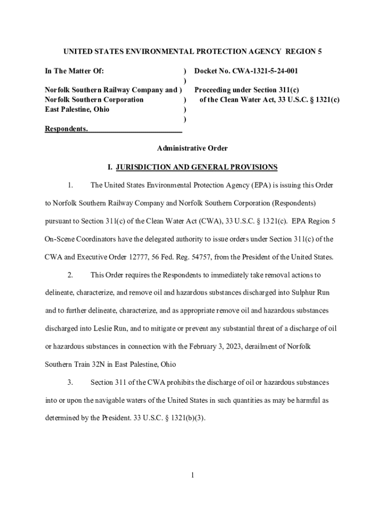 Get the free Administrative Order Under the Clean Water Act