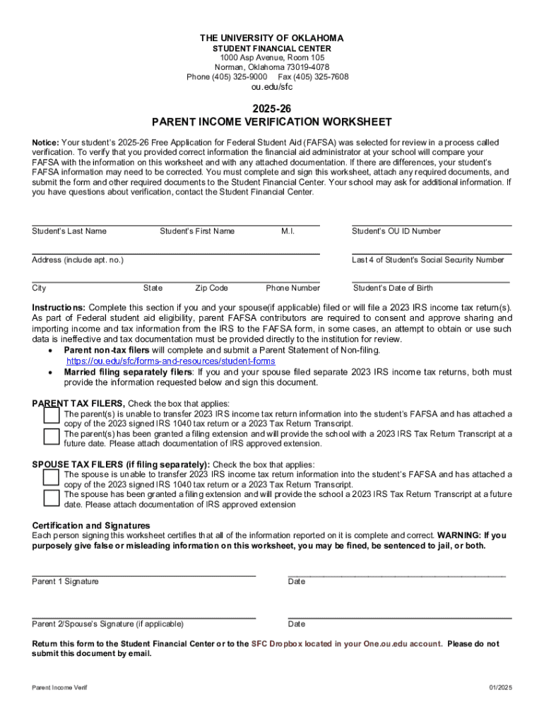 Key terminology often associated with the parent income verification worksheet includes terms like ‘Adjusted Gross Income (AGI)’, ‘household size’, and ‘financial aid package’. Understanding these terms is crucial for both parents and students as they navigate the financial aid landscape.