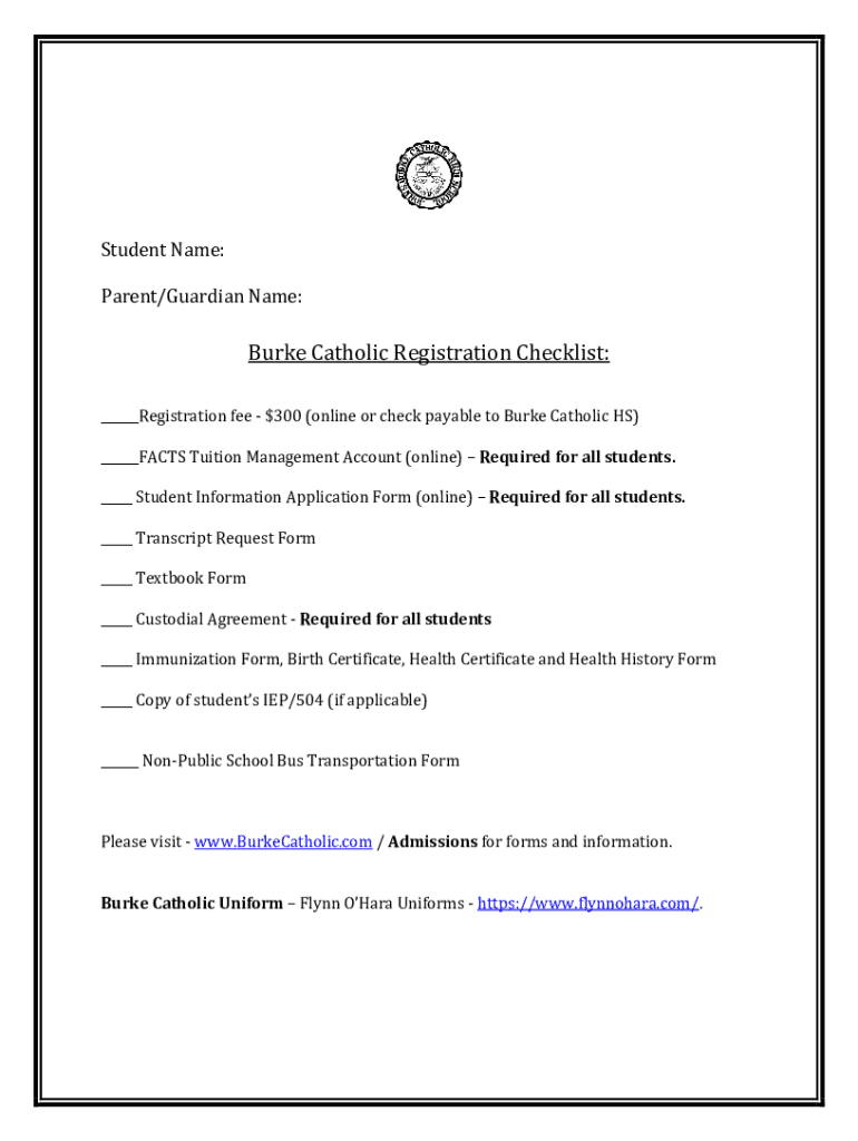 Burke Catholic Registration Checklist Form: Your Comprehensive Guide