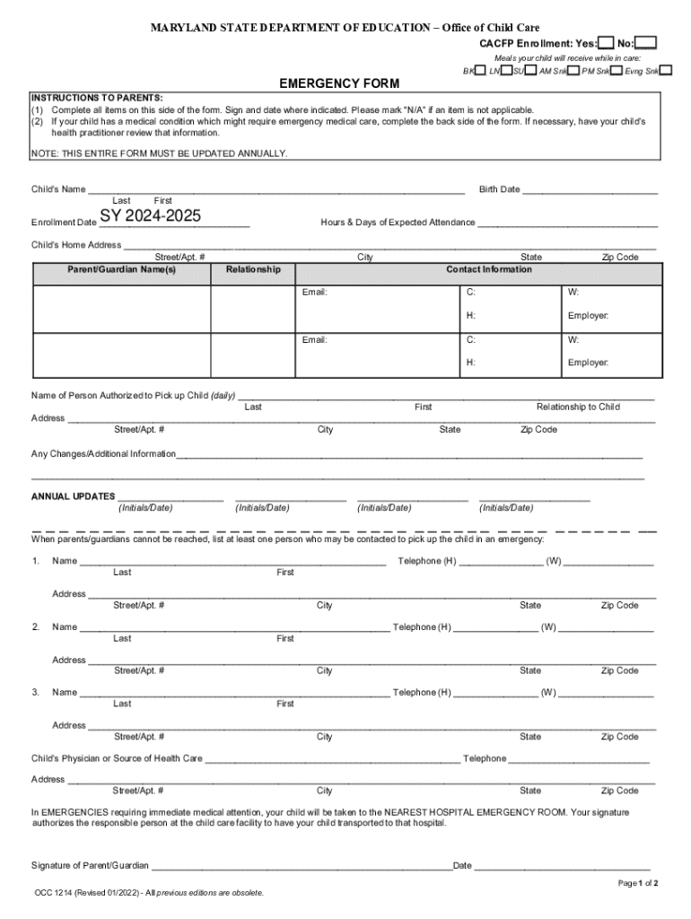 Emergency form for childcare: A comprehensive guide