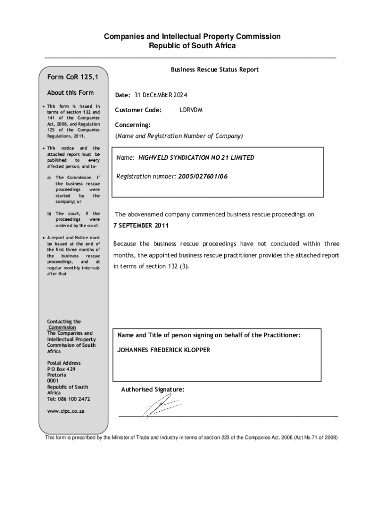 Get the free Business Rescue Status Report