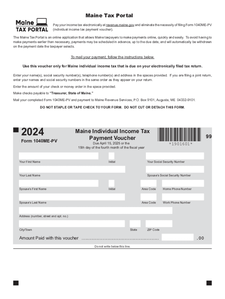 The 1040me-pv form is a specific tax form utilized by residents of Maine to report their income and calculate their state tax liabilities. It provides taxpayers with a streamlined approach to fulfilling their state tax obligations, ensuring compliance with Maine's tax regulations. This form is essential for residents who have earned income within the state and wish to accurately assess what they owe or are entitled to receive in refunds.