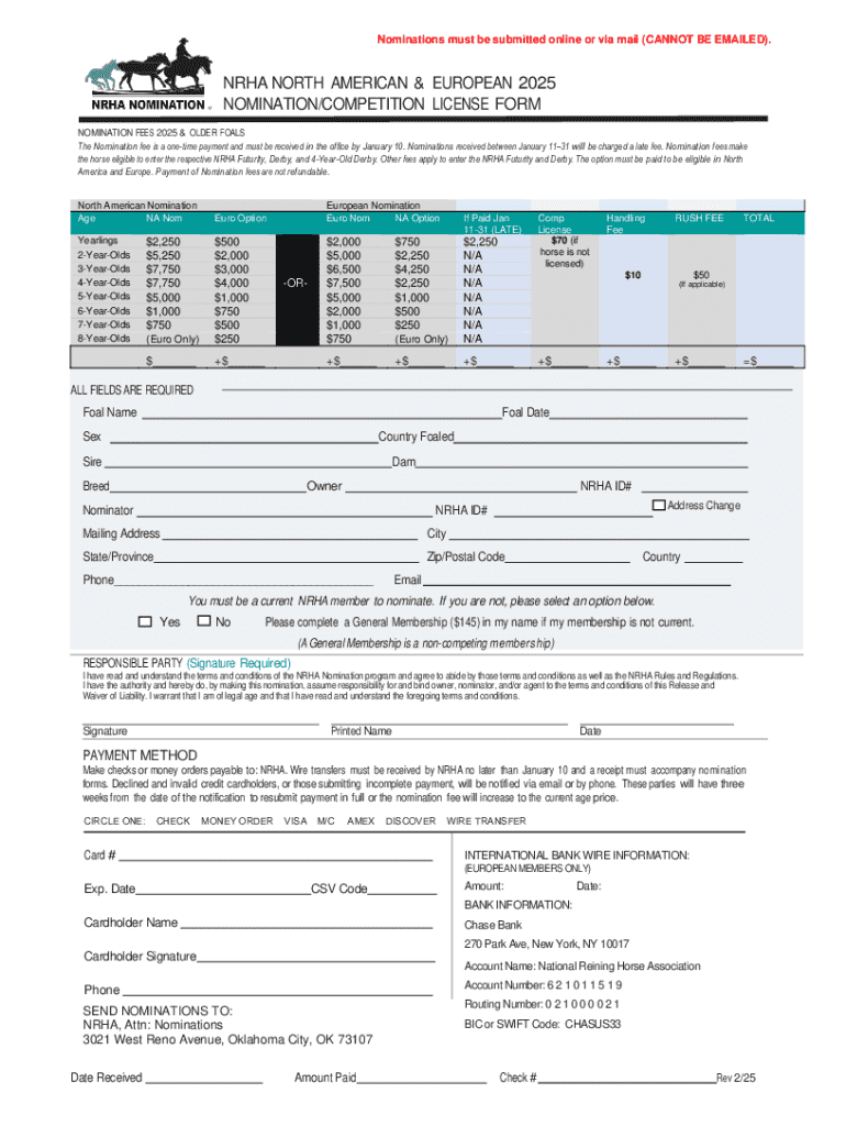 Get the free Nrha North American & European 2025 Nomination/competition License Form