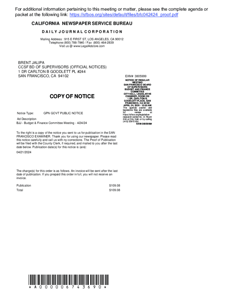 Get the free Notice of Regular Meeting