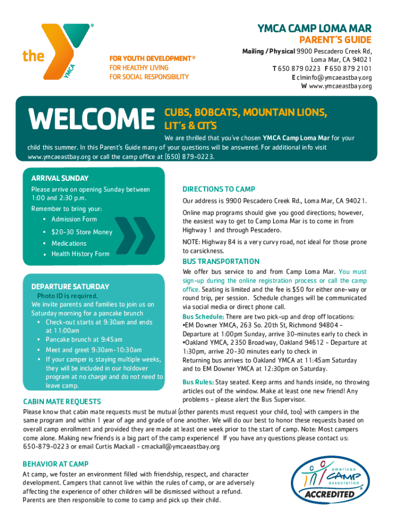 Get the free Ymca Camp Loma Mar Parent's Guide