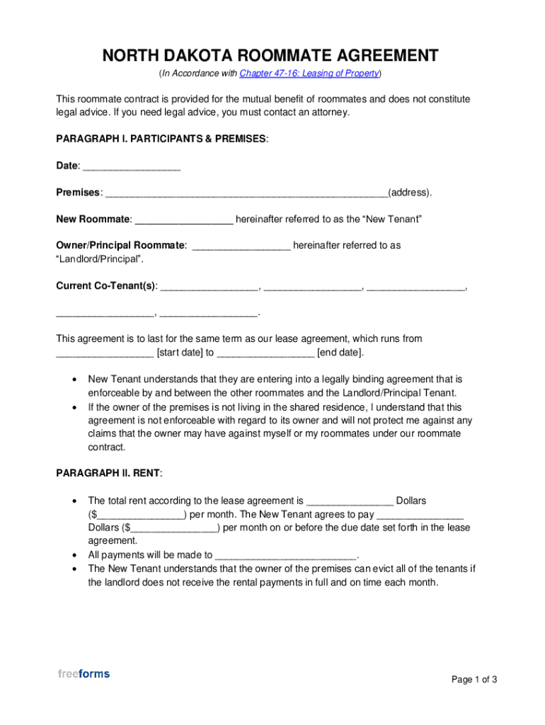 What is north dakota roommate agreement?