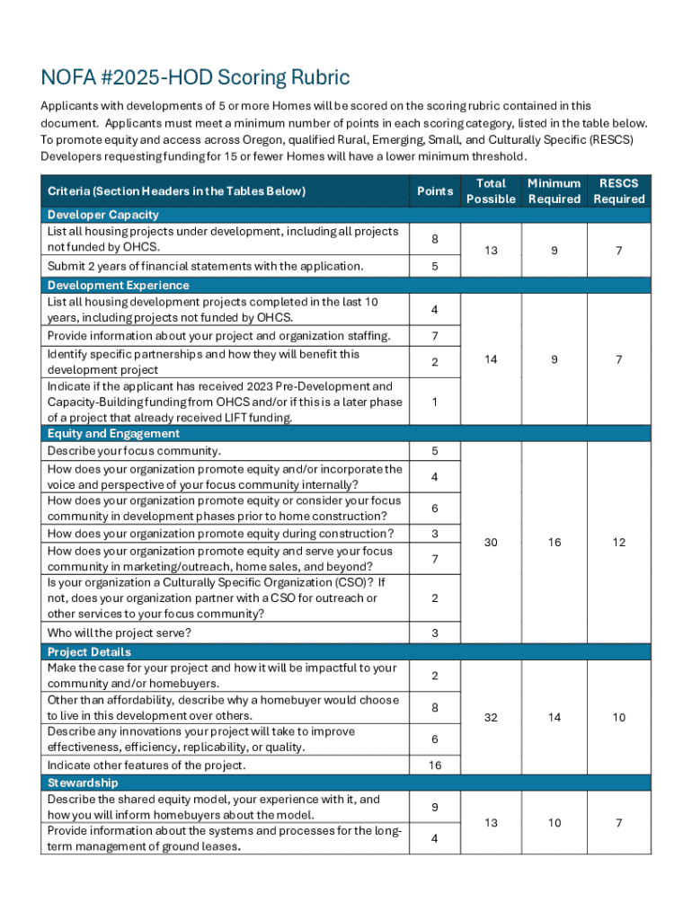 Understanding the NOFA 2025-HOD Scoring Rubric Form