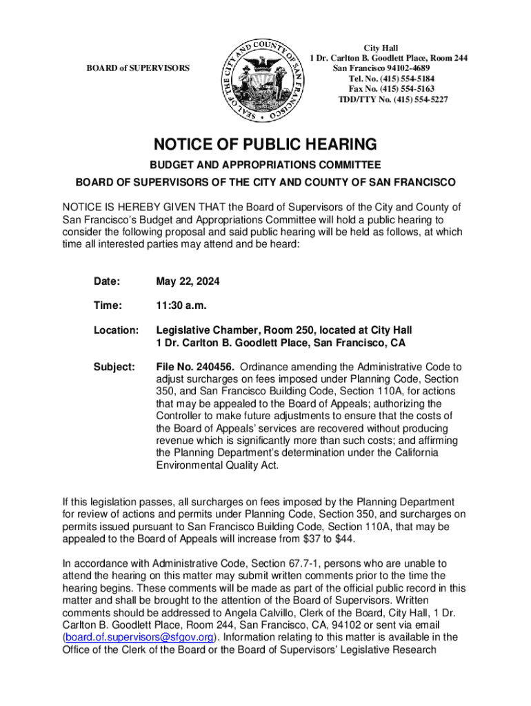 Get the free Notice of Public Hearing Budget and Appropriations Committee