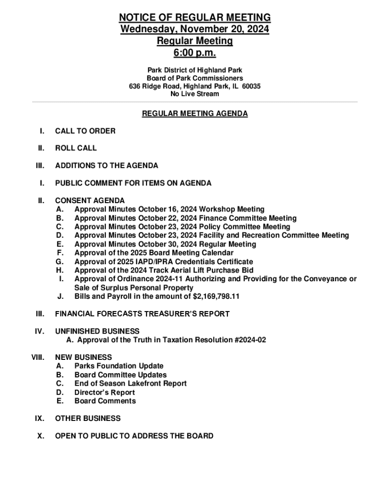 Get the free Notice of Regular Meeting