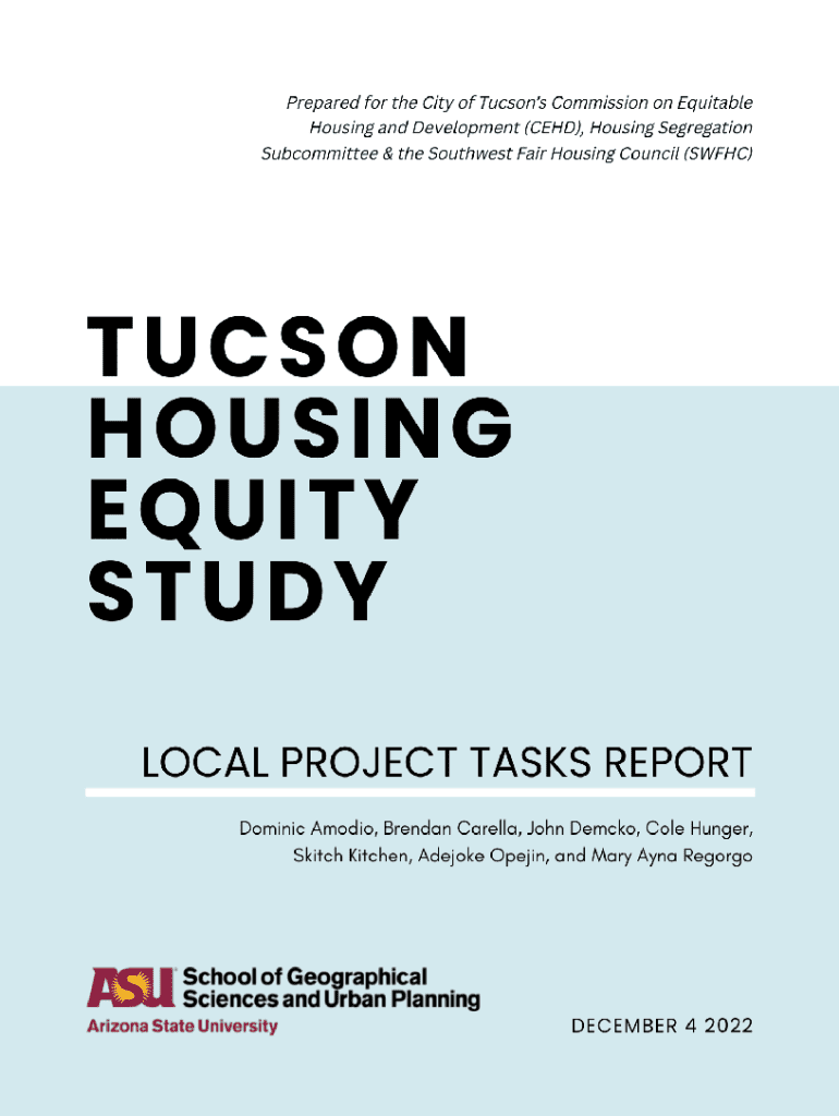 A comprehensive analysis comparing different municipalities\' approaches to achieve housing equity, focusing on methods, indices for tracking progress, and recommendations for Tucson, Arizona.