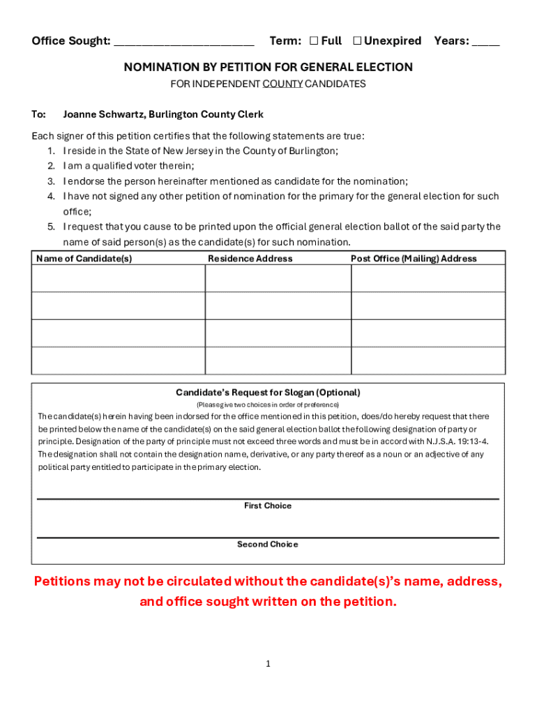 Get the free Nomination by Petition for General Election for Independent County Candidates