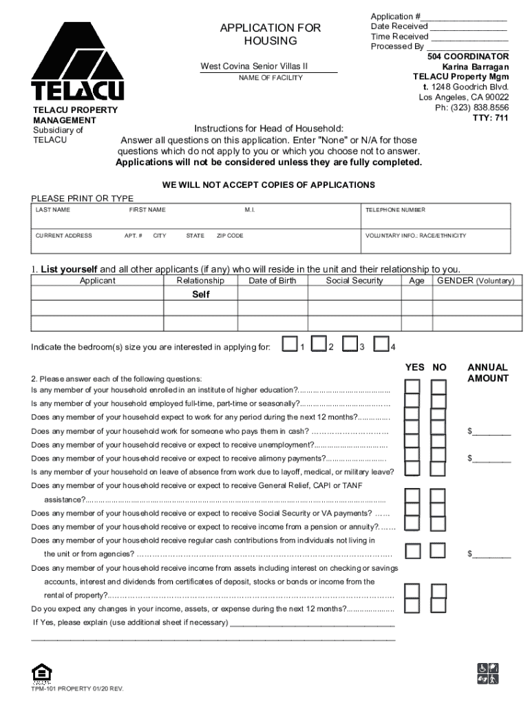 Get the free Application for Housing - West Covina Senior Villas Ii