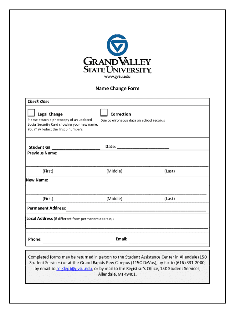Get the free Name Change Form
