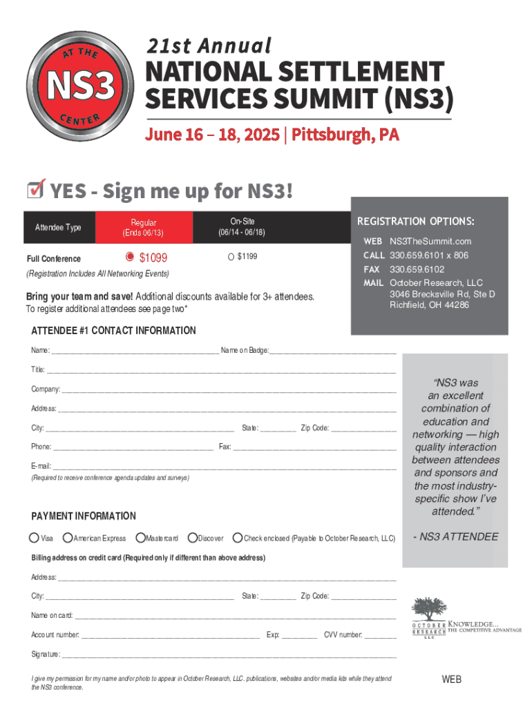 Get the free Ns3 Conference Registration Form