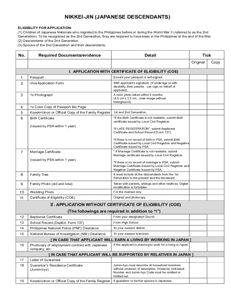 Understanding who qualifies for the Nikkei-jin visa is crucial. Generally, the eligibility is rooted in generational lineage. Typically, the visa is open to first-generation Nikkei individuals, who have direct Japanese ancestry, and second-generation applicants, who are grandchildren of Japanese emigrants. However, the family history must be documented thoroughly to verify eligibility.