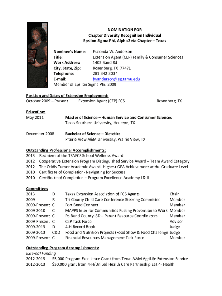 The nomination for chapter diversity form is carefully structured to gather detailed information about both the nominator and nominee. Understanding its key components is essential for a successful submission. The form generally includes several sections that help capture the essence of the nominee's contributions to inclusivity and diversity.