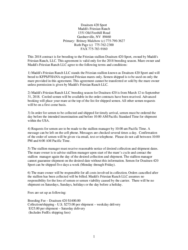 Get the free Breeding Contract for Doaitsen 420 Sport
