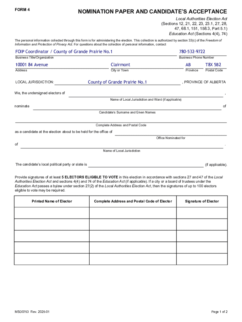 Get the free Nomination Paper and Candidate’s Acceptance