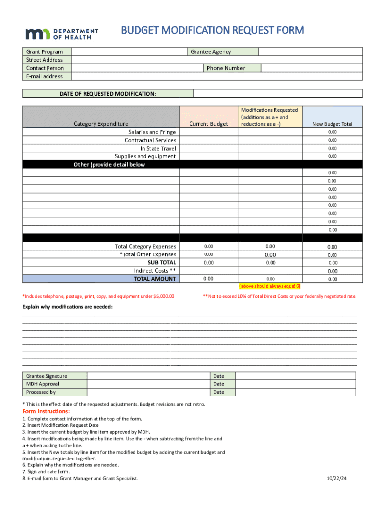 Get the free Budget Modification Request Form