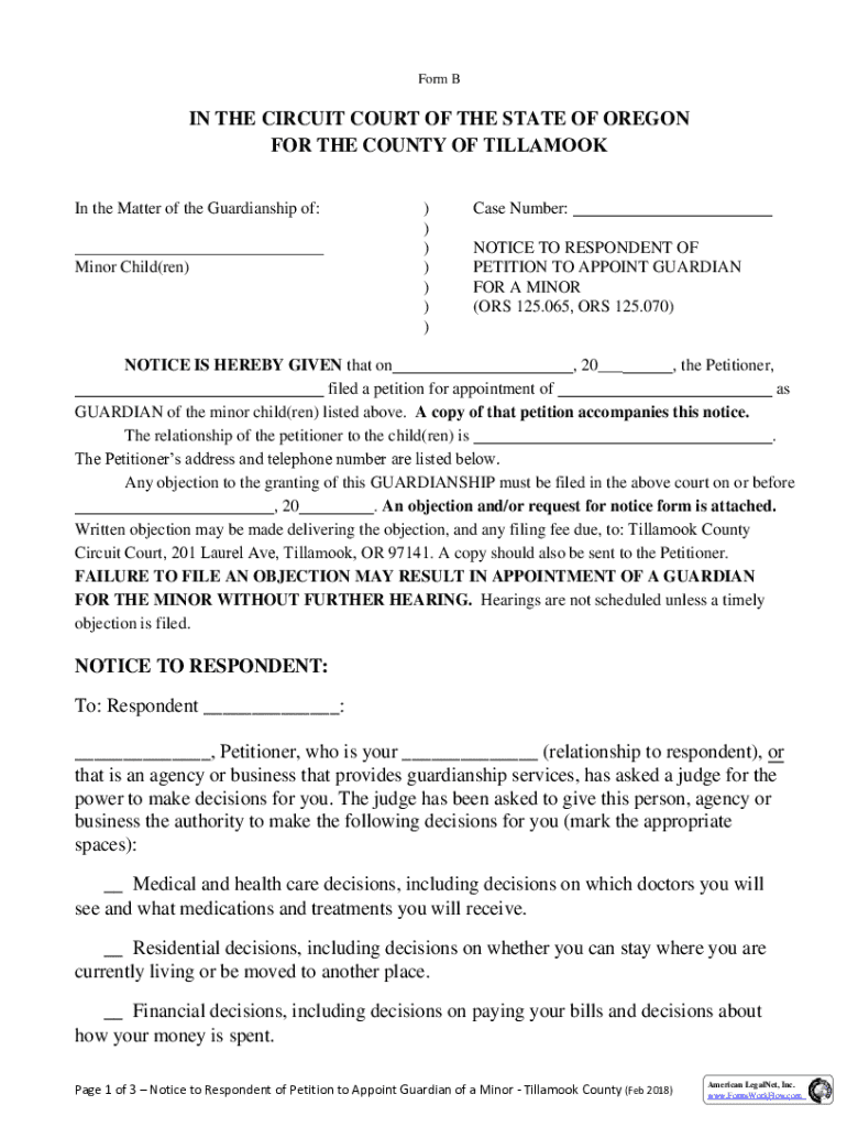 Get the free Notice to Respondent of Petition to Appoint Guardian for a Minor