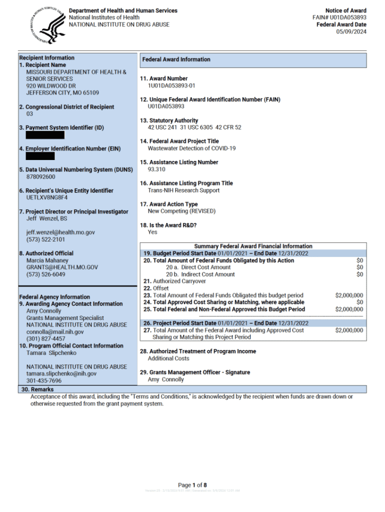 Get the free Notice of Award - health mo
