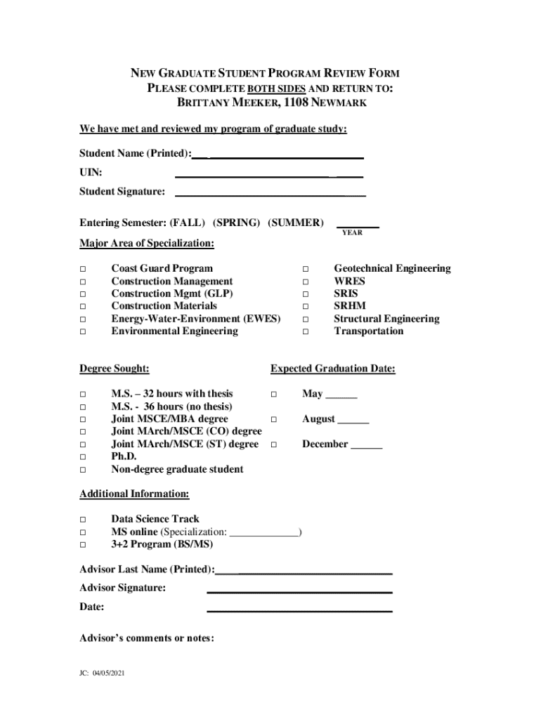 The new graduate student program form is an essential document designed for those seeking to enroll in advanced degree programs. Its purpose extends beyond mere application; it plays a pivotal role in assessing a candidate's readiness and fit for rigorous graduate studies. The clarity and thoroughness of this form can significantly influence admissions decisions, making it crucial for prospective students to ensure accuracy and completeness.