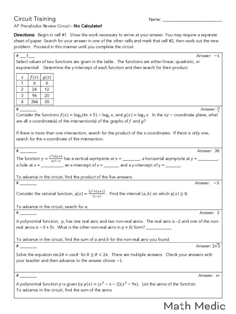 AP Precalculus Review Circuit Form: A Comprehensive Guide