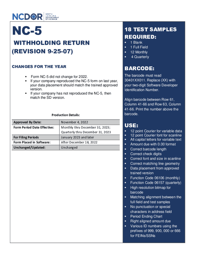 What is nc-5 withholding return?
